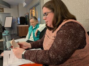 The nicht’s stint fur Ayr Scrievers wis “Hoo tae pit thegither ma novel”, a skill biggin session gien by oor President Fiona Johnson.