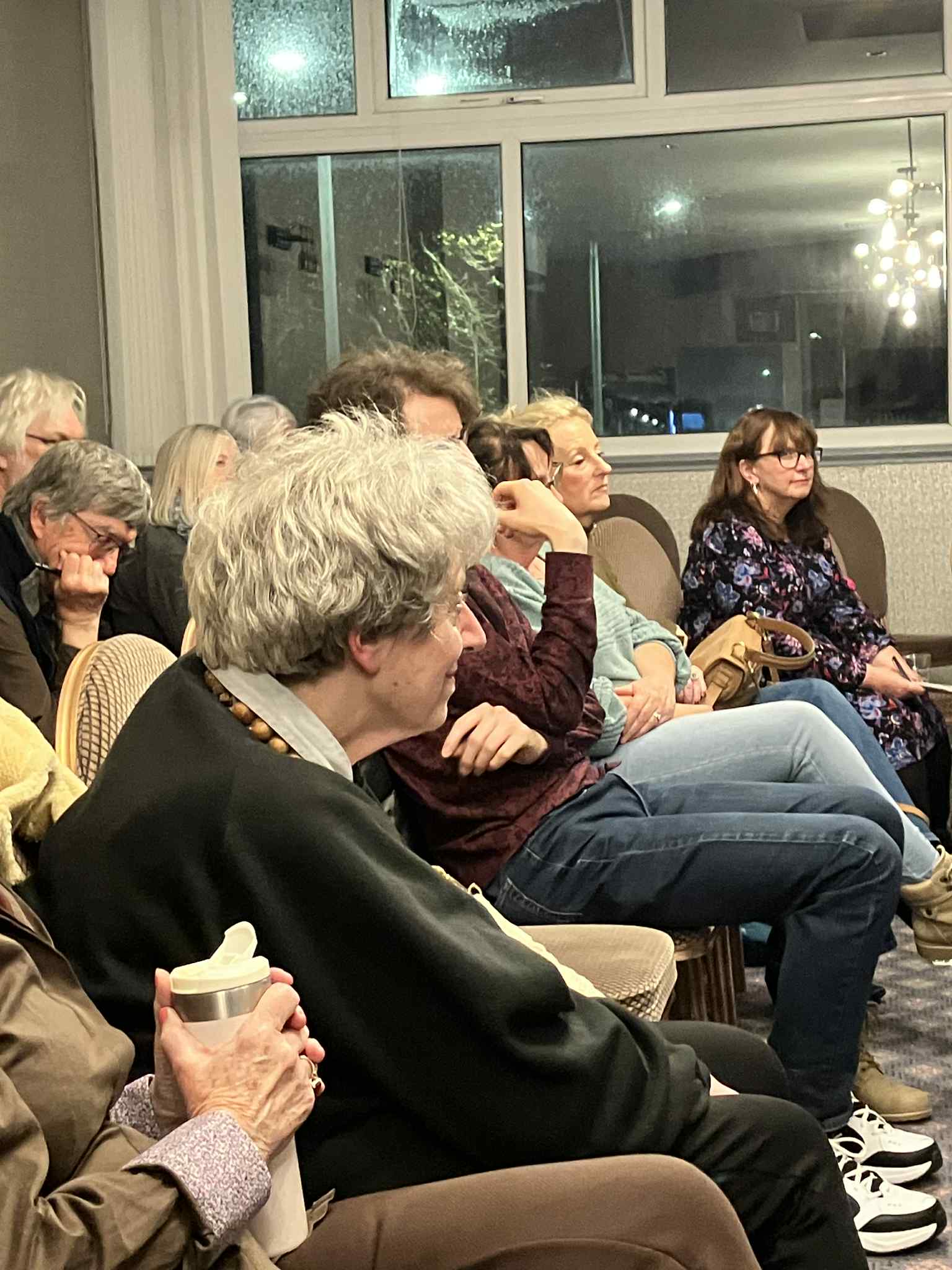 Stephen read from Seafarers – a descriptive passage which transported us to the guano splattered rocks of North Ronaldsay, where noisy tysties (black guillemots) were being ringed.
